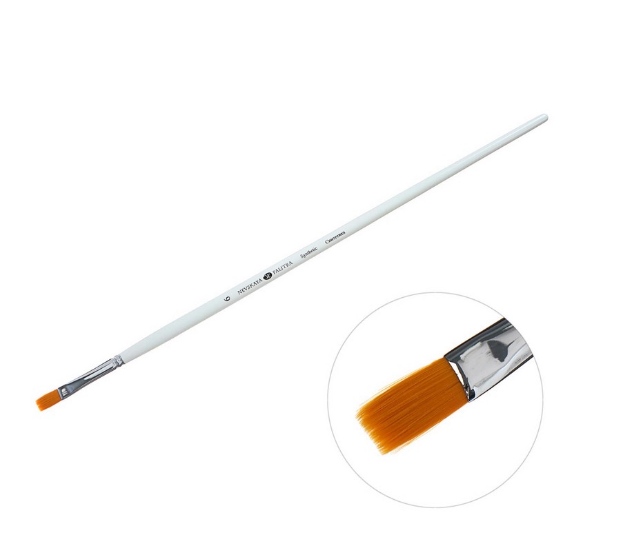 Кисть из синтетики "Невская палитра", плоская, длинная ручка, №6