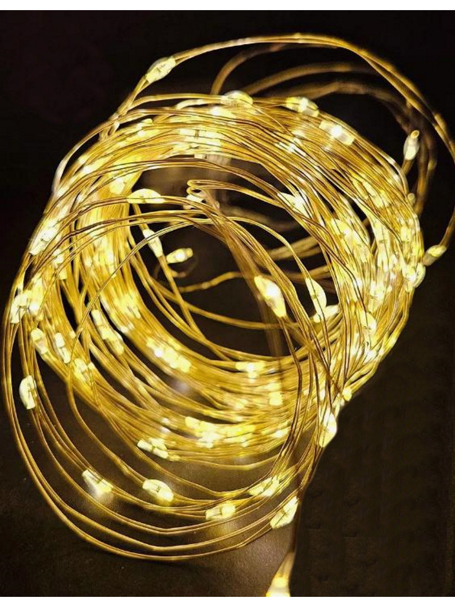 MILED Гирлянда-проволока. 10 м 100 ламп,8 режимов, тёплый белый свет, от сети