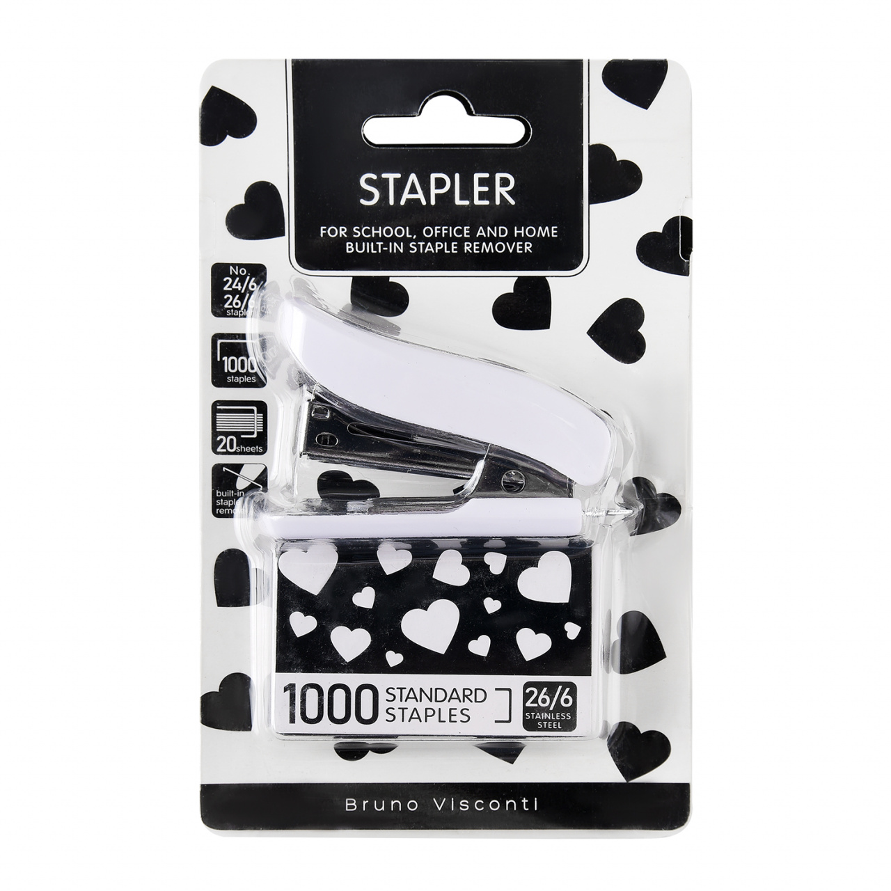 Степлер №24-26/6 Bruno Visconti "Art Graphix" 20л., 1000 скоб, блистер, европодвес