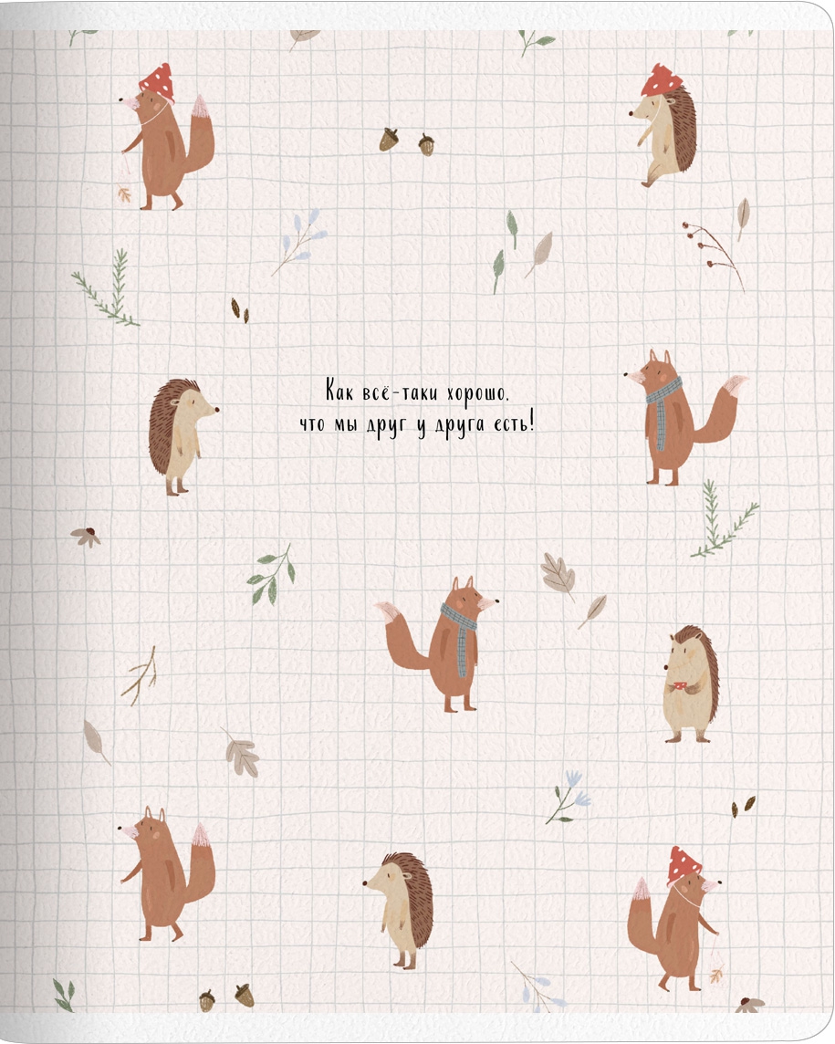 Обложка: картон, печать 4+4, микротекстурирование, ламинация. Скрепка. Высококачественная бумага, титульный лист. Дизайн внутреннего блока "в клетку". Углы тетради скруглены.