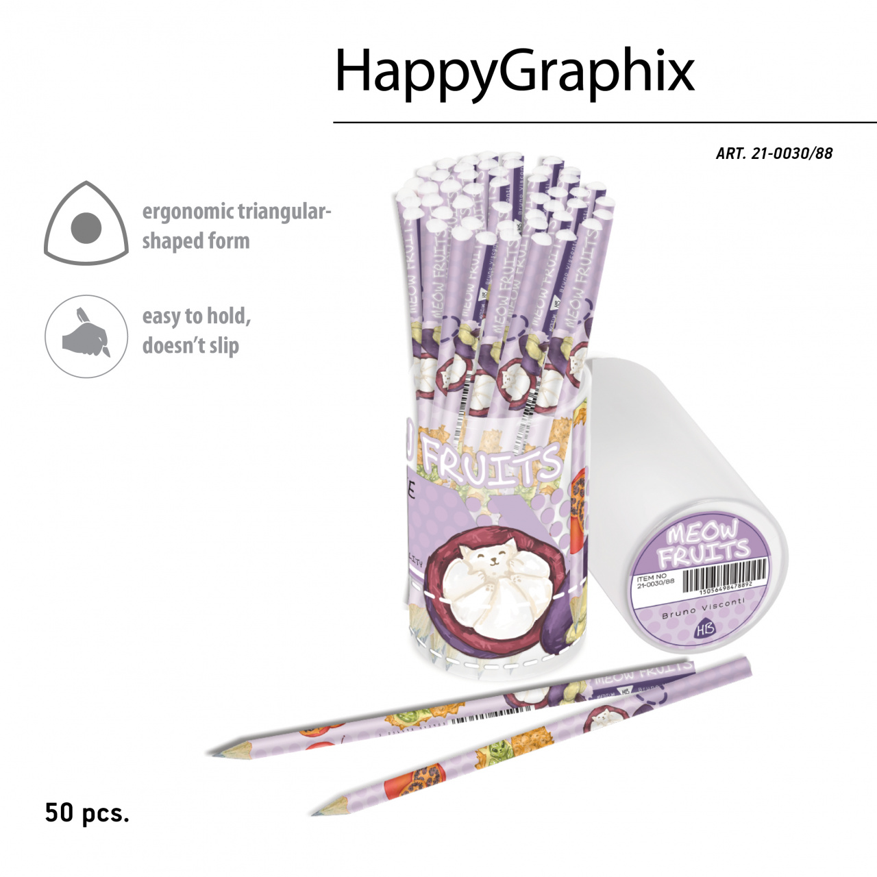 Карандаш Bruno Visconti "Meow fruits" НВ, 2мм., трехгран, дерево, пласт. туба