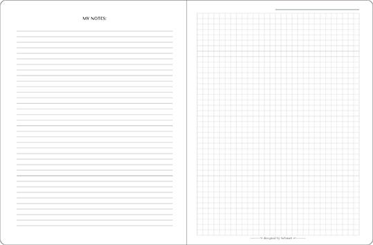 Высококачественная бумага, титульный лист, дизайнерский внутренний блок "в клетку". Углы тетради скруглены.