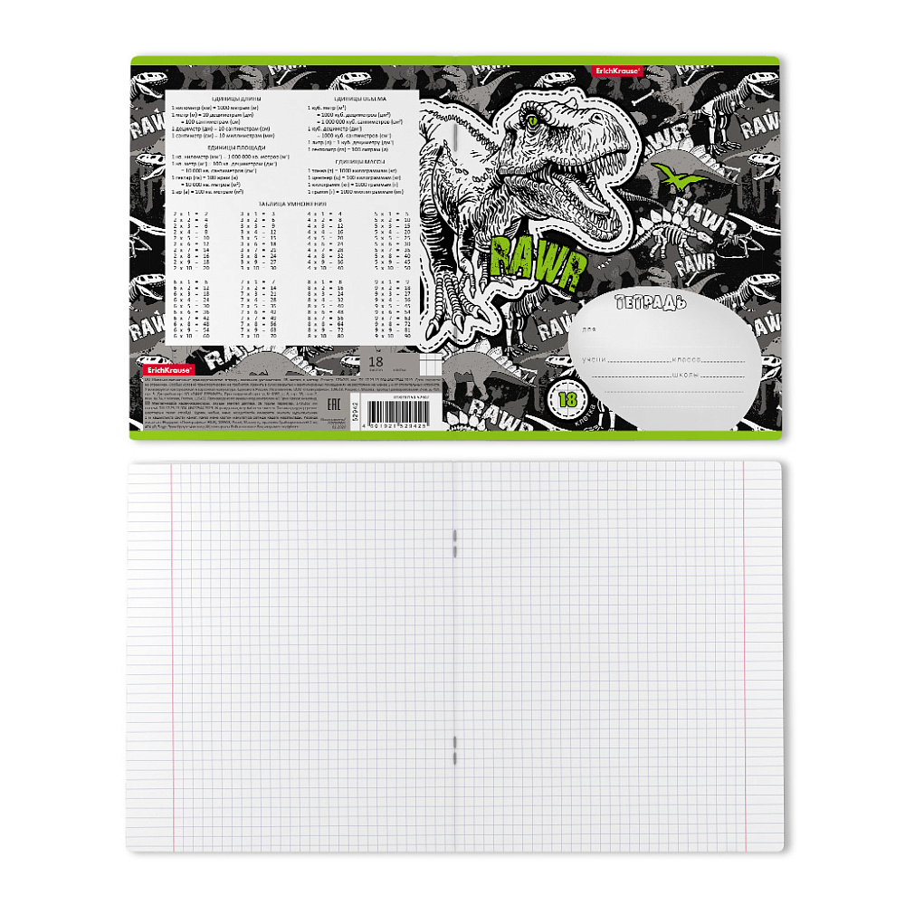 Тетрадь школьная ученическая ErichKrause Dinosaur Park, 18 листов, клетка (в плёнке по 10 шт.)