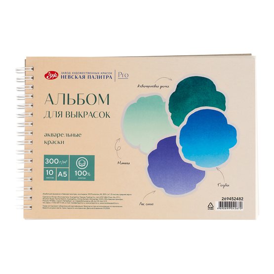 Альбом для выкрасок "Невская палитра", на спирали, 100 % хлопок, А5, 300 г/м2, 10 листов, среднее зерно