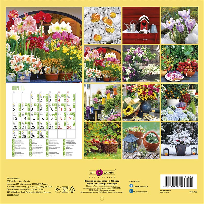Календарь 2026г Арт Дизайн "Лунный календарь садовода" настен. перекидной, скрепка, 290х290мм