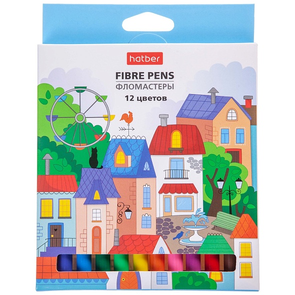 Фломастеры Hatber 12 цв. Городок в карт.короб. с европодвесом