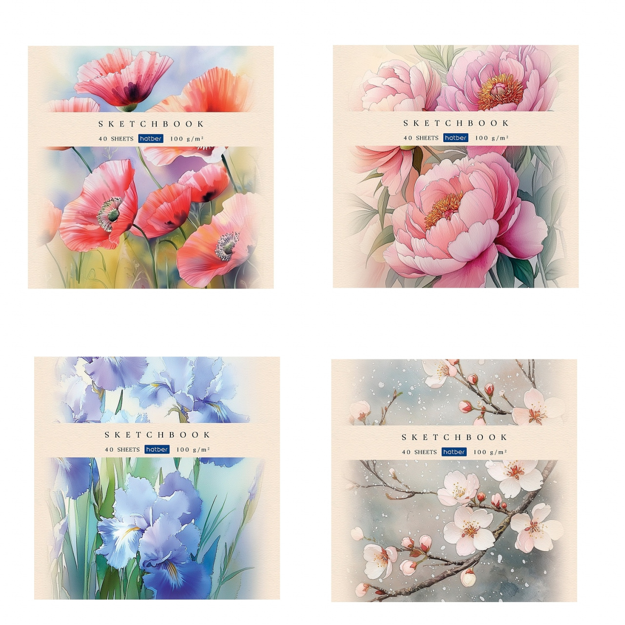 "Premium" Блокнот SketchBook 40л А5ф 165х165мм без линовки 100г/кв.м на скобе Обл. мел.картон мат.ламин. серия -Ботаника-