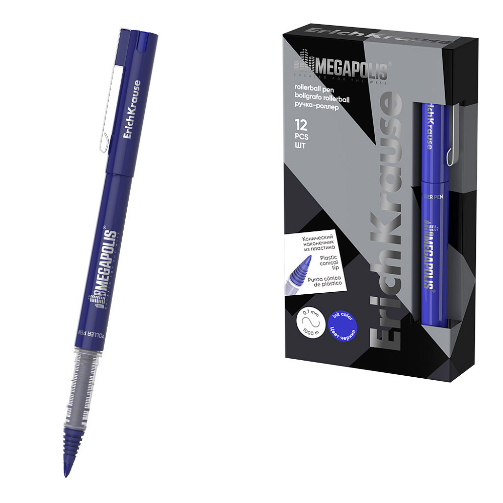 Ручка-роллер ERICH KRAUSE Megapolis Stick синяя, 1,0мм., карт.кор.