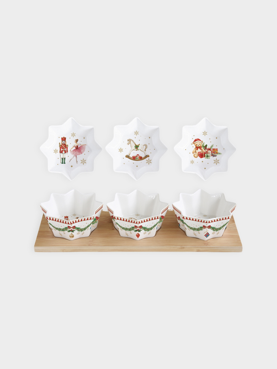 Набор для закусок Easy Life "Magie de Noel" 3 предмета, подставка, фарфор, бамбук
