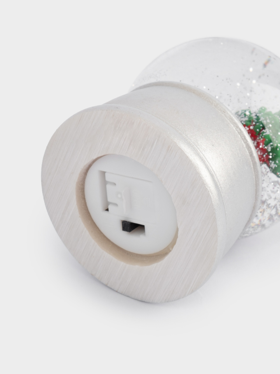 Снежный шар, с подсветкой. Размер: 7х8 см Материал: стекло, полирезин, блестки, вода. Работает от 2-x батареек типа LR44 (поставляются в комплекте). Рекомендуется протирать мягкой влажной тканью. Беречь от механических повреждений.