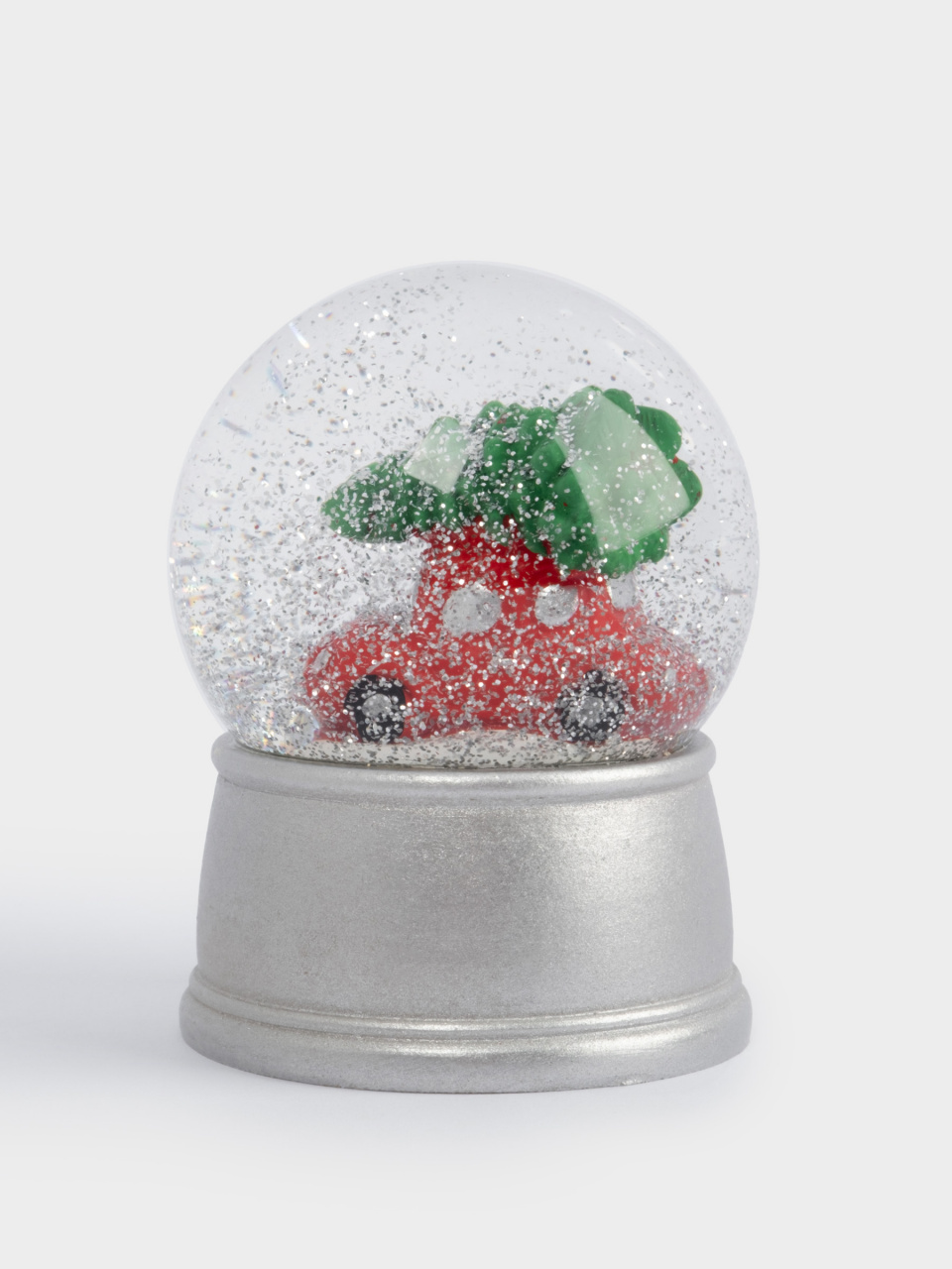 Снежный шар New year "Машина с елкой" 7 см., серебристый. с подсветкой