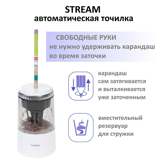 Точилка ХАТБЕР Stream электрическая, аккумуляторная, с автоподачей, карт.кор.