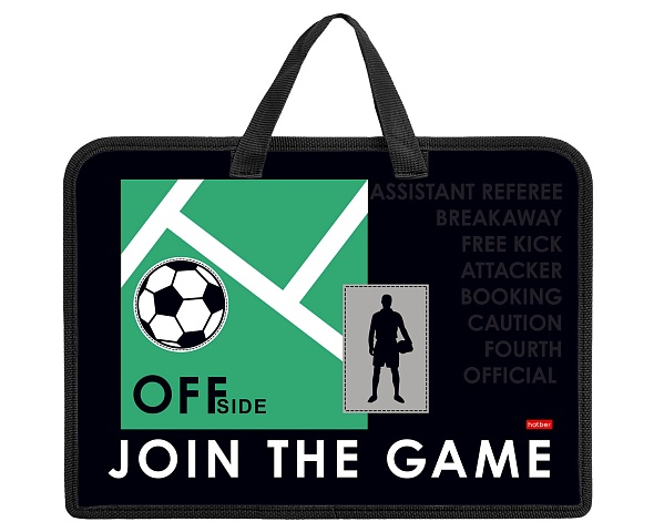 Папка А4 ХАТБЕР с ручками "Пенальти" для тетрадей, 1 отд., молния, 245х340х35мм., инд.уп.