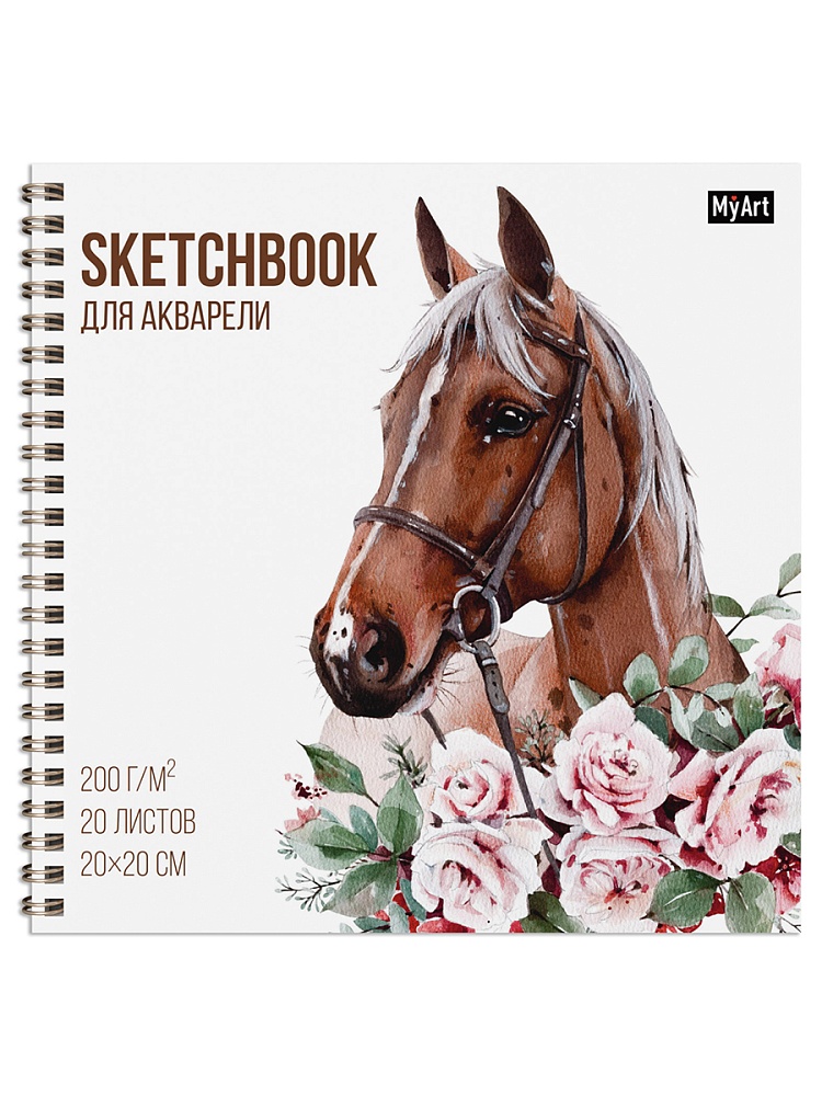MyArt. СКЕТЧБУК для АКВАРЕЛИ на гребне. ЛОШАДЬ В ЦВЕТАХ