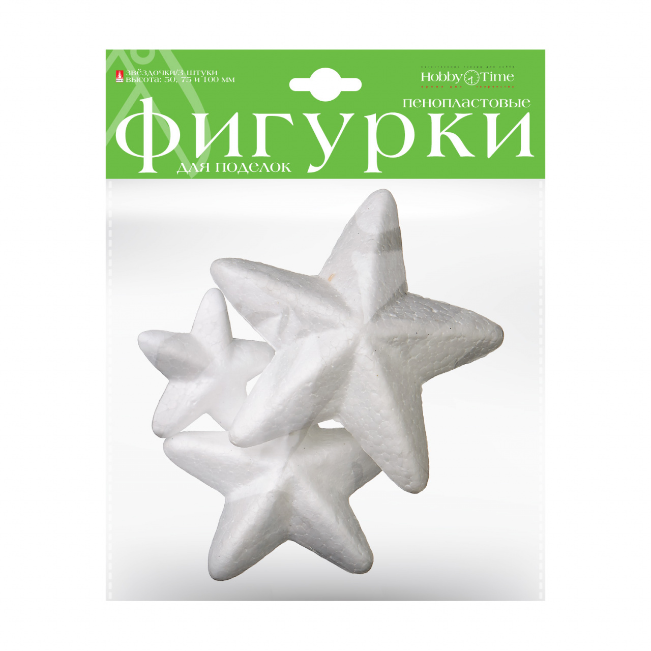 ПЕНОПЛАСТОВЫЕ ФИГУРКИ. ЗВЕЗДОЧКИ 50, 75, 100 ММ, 3 ШТ.
