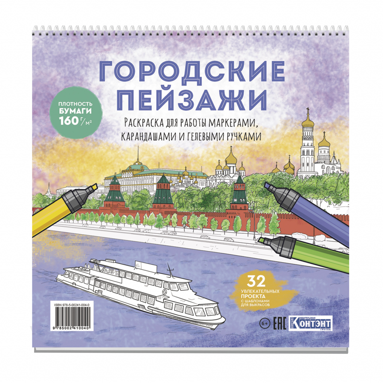 Она включает в себя 32 увлекательных проекта для релаксации и наслаждения. Вдохновляйтесь и раскрашивайте городские пейзажи маркерами или цветными карандашами.