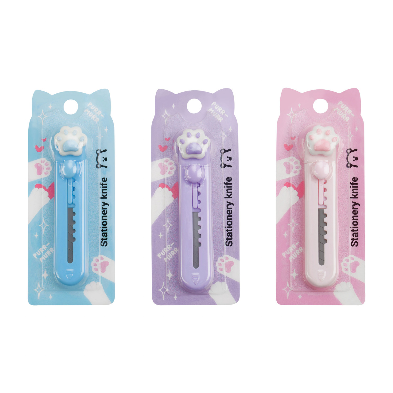 Нож канцелярский 9мм MESHU "Paw", блистер, европодвес, ассорти