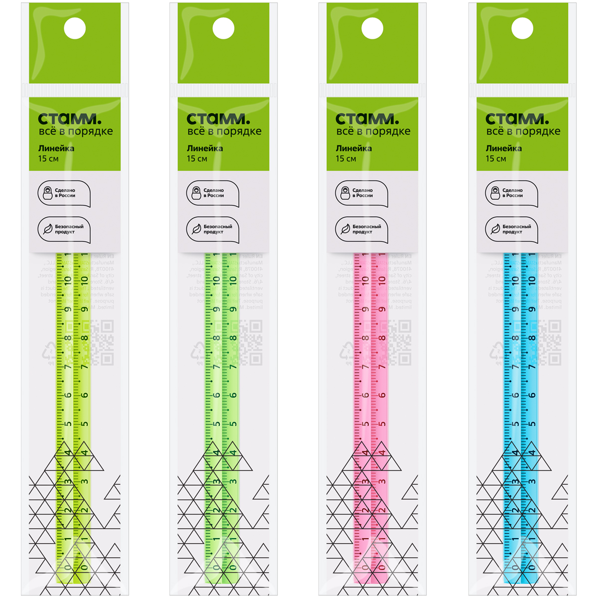Линейка «СТАММ» предназначена для выполнения чертёжных и измерительных работ. Изделие имеет контрастную миллиметровую шкалу. Длина шкалы - 15 см, ширина линейки - 11 мм. Изделие имеет трёхгранный корпус. Изготовлена из качественного полистирола, и имеет гладкую глянцевую поверхность. Упакована в пакет с европодвесом. Цвет изделия - неоновое ассорти.
