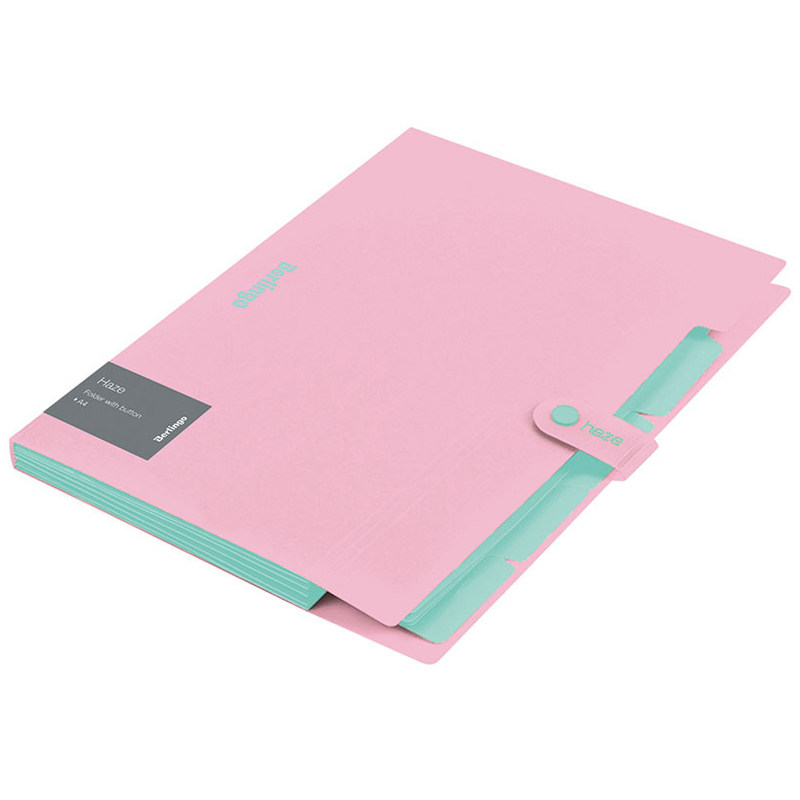Папка 5 отделений Berlingo "Haze", А4, 600мкм, на кнопке, розовая, софт-тач