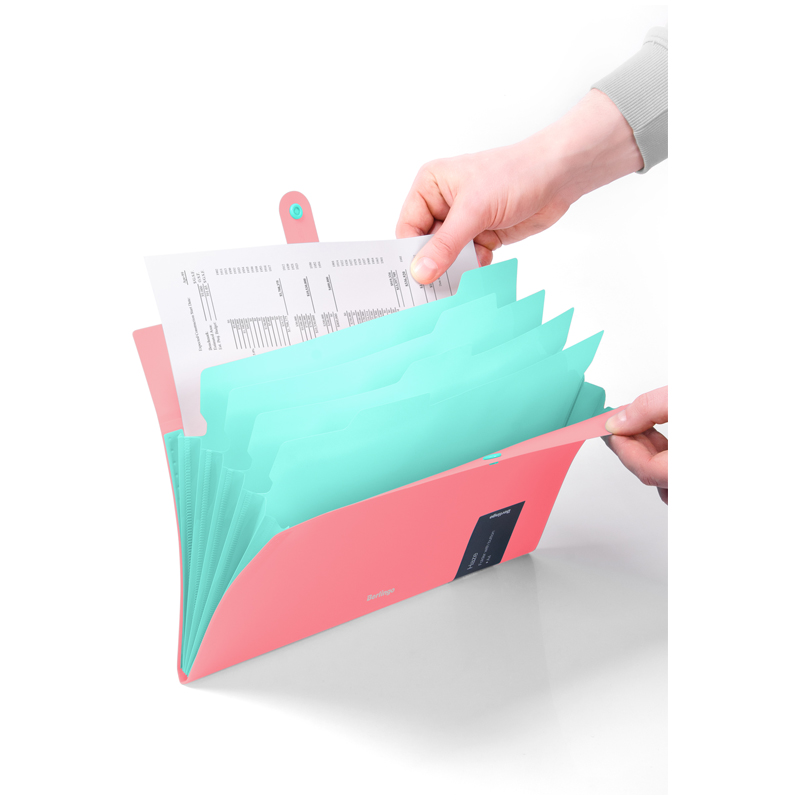 Папка пластиковая на кнопке с отделениями Berlingo "Haze" формата А4. Обложка с эффектом софт-тач. Цвет обложки - розовый. 5 внутренних отделений для удобного хранения и организации документов. Каждое отделение с индексным полем, позволяет сортировать документы по темам или алфавиту. Надежная застежка-кнопка. Контрастный мятный цвет отделений. Быстрый доступ к содержимому. Изготовлена из высококачественного полипропилена с матовой текстурой поверхности софт тач. Предназначена для хранения и транспортировки документов. Толщина обложки 600мкм. Вмещает до 200 листов. Размер 245*325*10. Упакована в индивидуальный прозрачный пакет по форме.