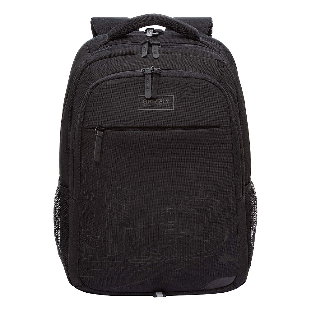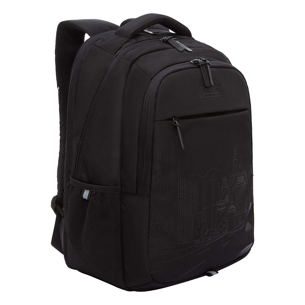 Рюкзак молодежный Grizzly RU-532-2 черный, 2 отд, карманы, анат.спинка, свет.элем, 31х42х22