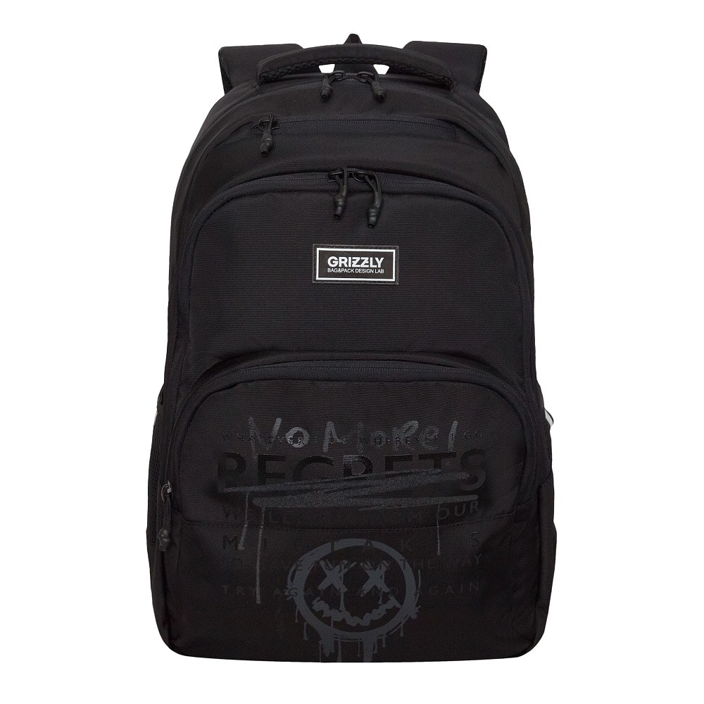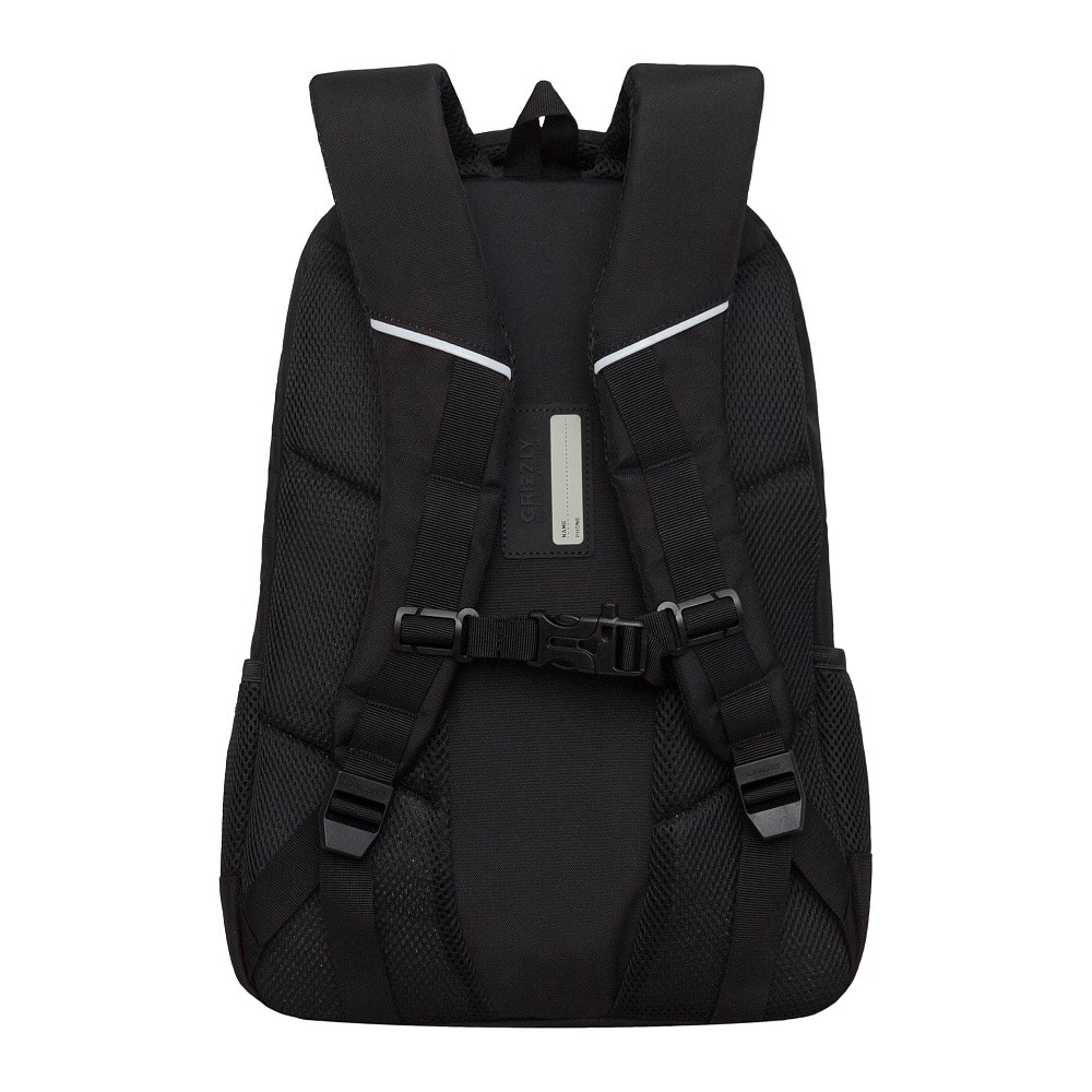 Рюкзак молодежный Grizzly RU-630-3 черный, 2 отд, карманы, анатом.спинка, свет.элементы, 32х45х23