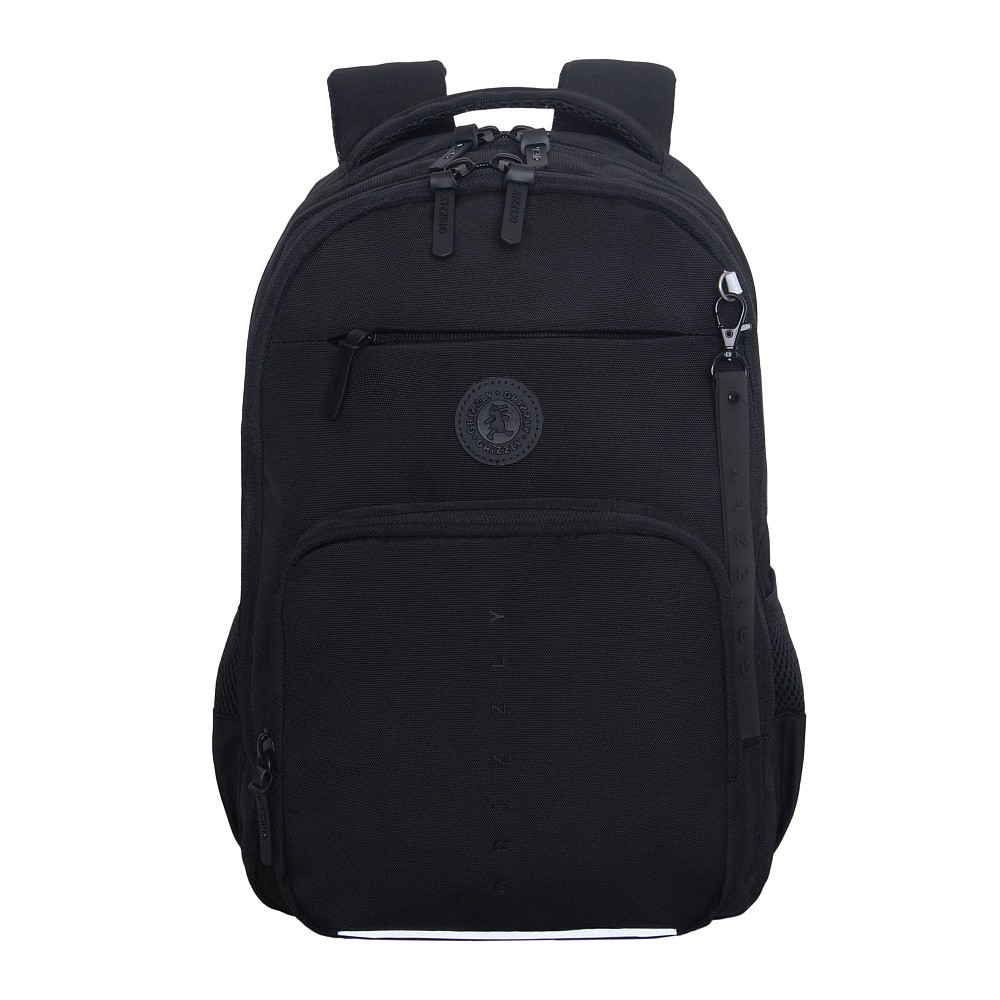 Рюкзак школьный Grizzly RB-659-2 черный, 2отд, карманы, анат.спинка, свет.элем, 28х40х15,5