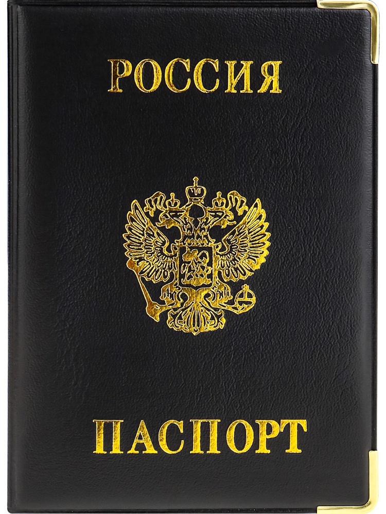 Обложка д/паспорта Миленд "Россия" черная, с метал.уголками