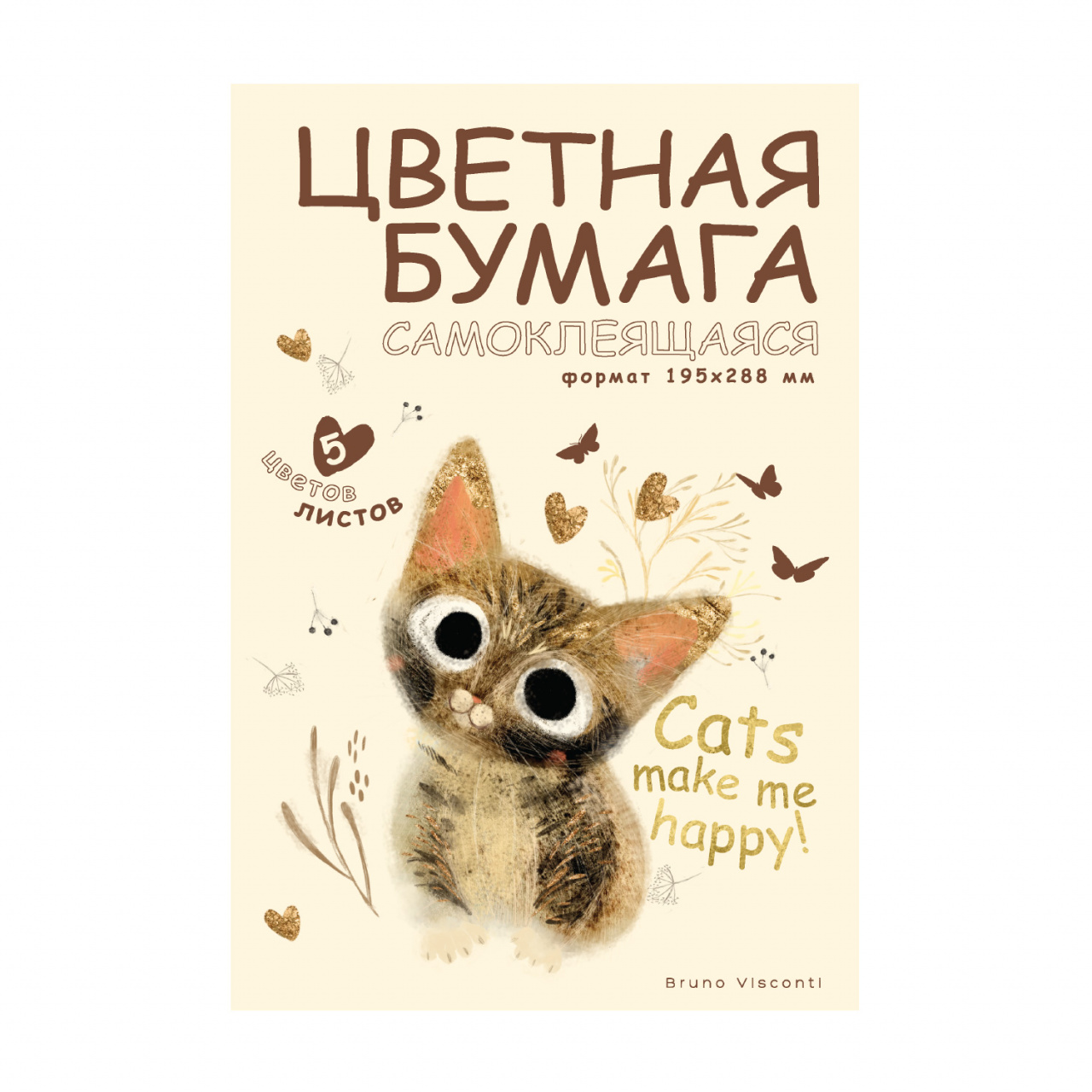 Цветная бумага А4 Bruno Visconti 5цв./5л. "Love Me" самоклеящ, 145 г/кв.м, папка