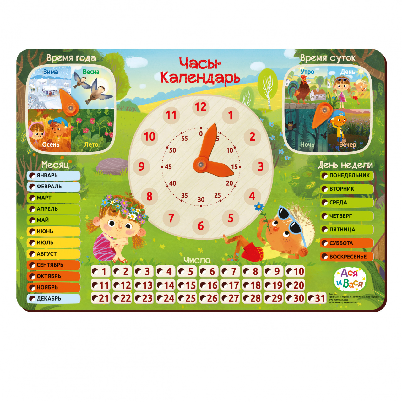 Развивающая игра Ася и Вася "Часы-календарь" часы, бизиборд, календарь
