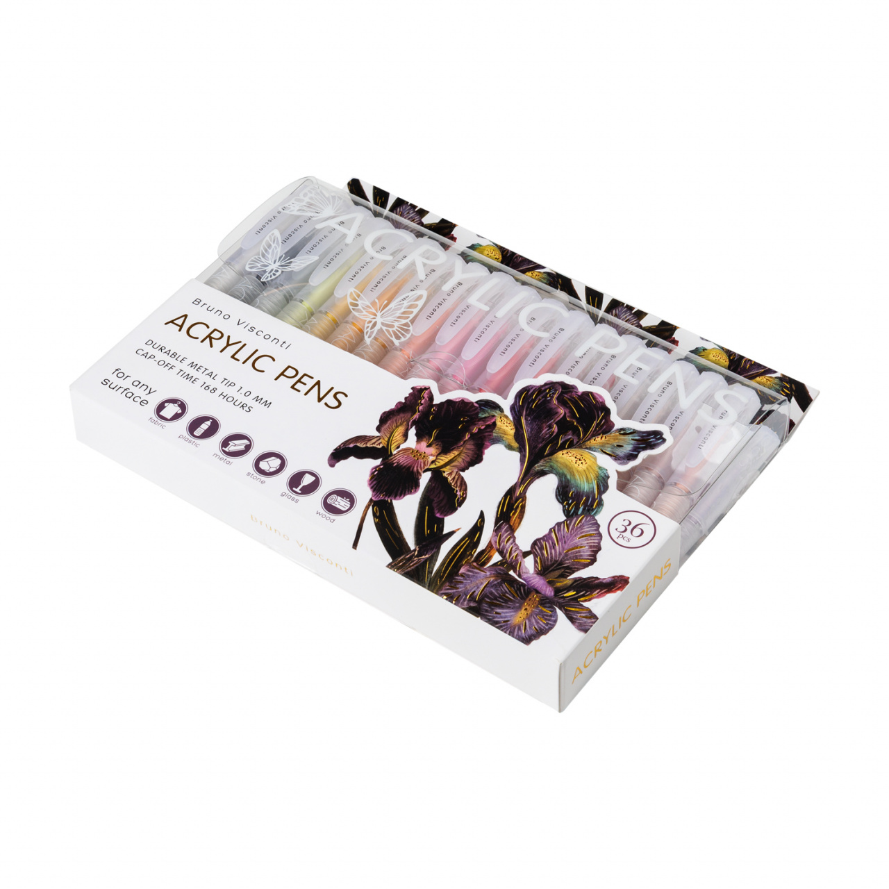 Набор акриловых ручек Bruno Visconti 36цв. "Flora.Ирисы" 1,0мм, прозр.корп, пвх, европодвес