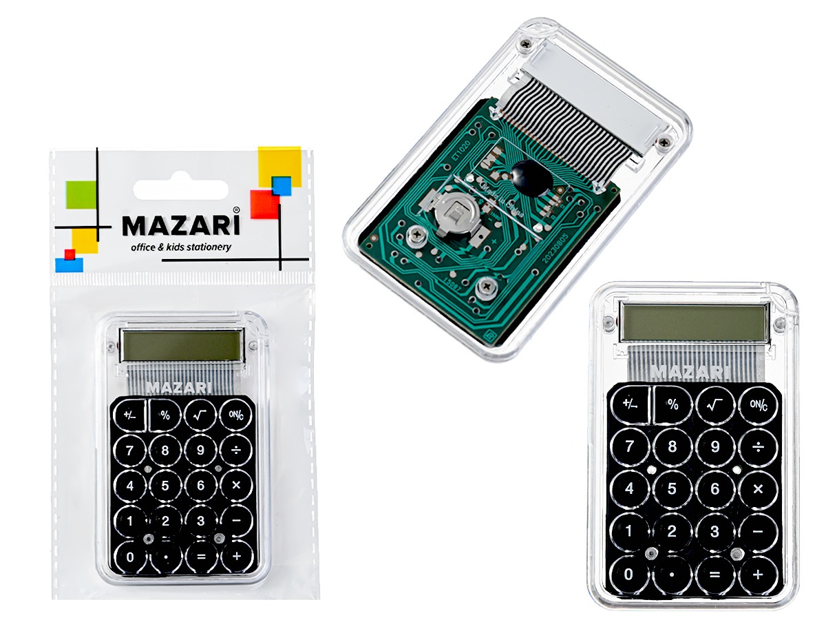 Калькулятор Mazari 8 разр, прозрачный, карманный, 85х55см., пакет, европодвес