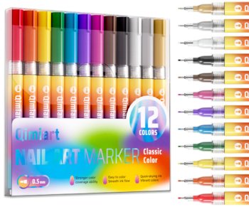 Маркер акриловый 12 цв. ДЛЯ ДИЗАЙНА НОГТЕЙ "Классические цвета" 0,5 мм, круглый корпус, помповая подача чернил, в уп ПВХ M560-2