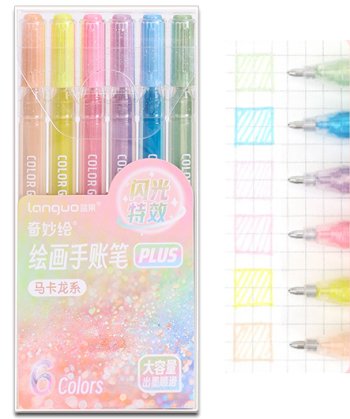 В наборе гелевые ручки 6 цветов с глиттером. Цветные гелевые ручки используются для выделения в тексте заголовков, определений и других элементов, на которые необходимо обратить внимание. С помощью этих ручек создаются декоративные надписи или рисунки.
