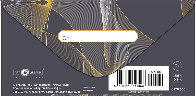 Конверт д/денег Арт Дизайн "Геометрический орнамент" вырубка, 83х167мм.