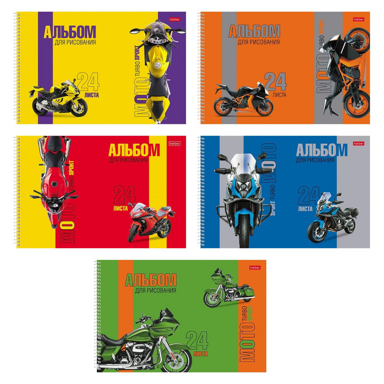 АЛЬБОМ для рисования 24л А4ф перфорация на отрыв на спирали выб лак 5 диз.в блоке серия -TurboМото-