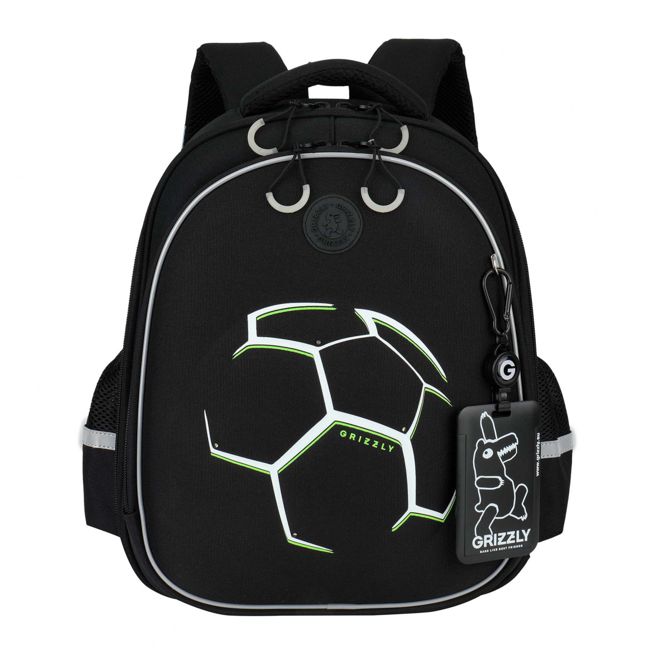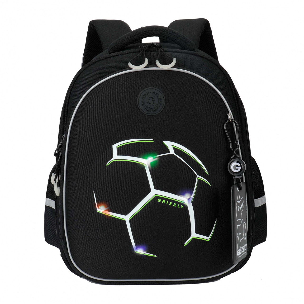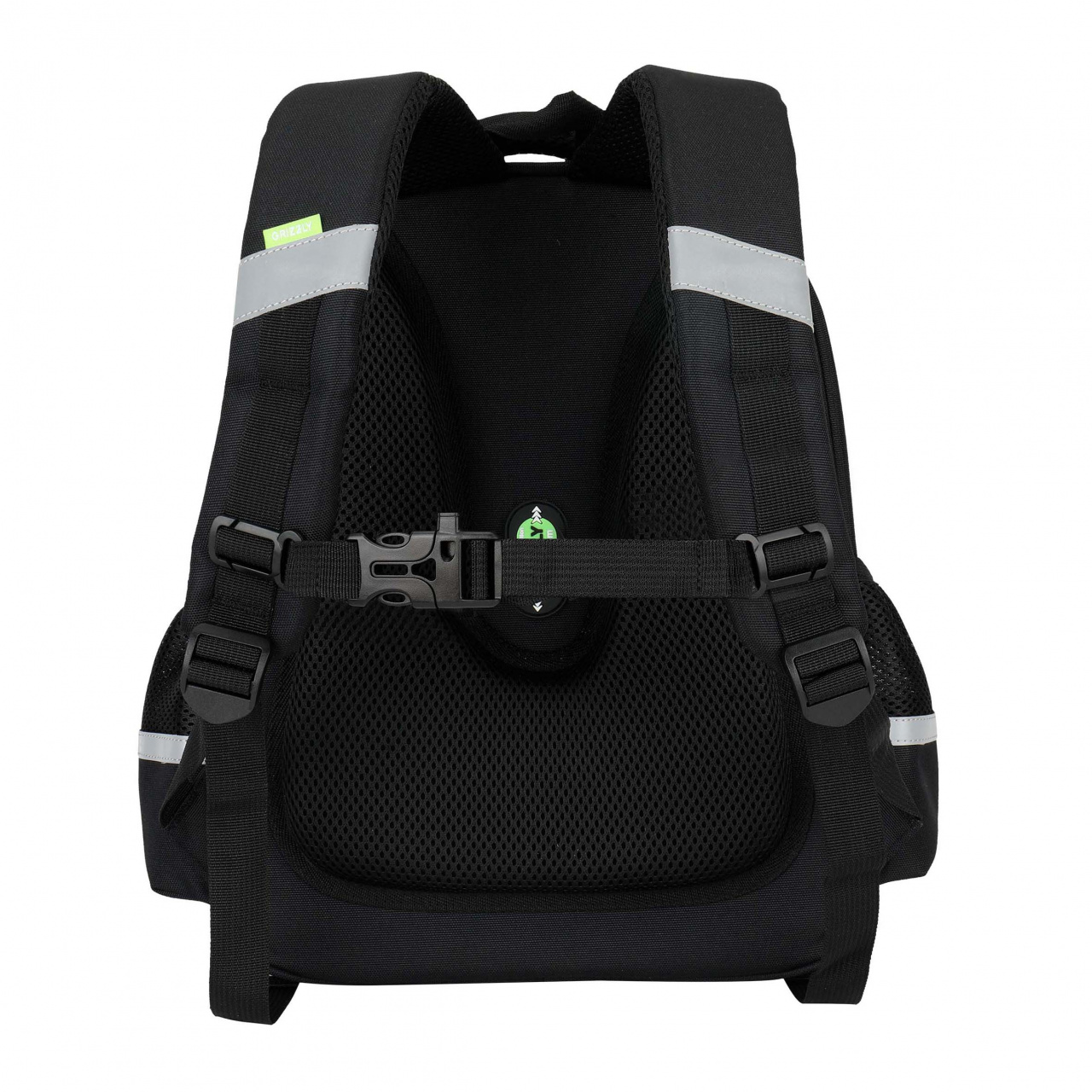 Рюкзак школьный Grizzly RAz-687-11 черный, 2отд, карманы, анат.спинка, картхолдер, свет.эл, 28х36х20