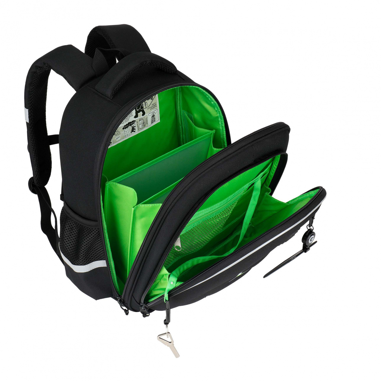 Ранец серии RAz рассчитан на рост от 125 до 135 см. В него поместятся все школьные принадлежности. Основное отделение разбито на три отсека: для книг, тетрадей и документов формата А4. В дополнительное помещается сменка (есть три кармашка для мелочей). В боковых можно носить воду или перекус. Каждый предмет на своем месте. Ранец отлично подойдёт для первоклассника. У портфеля формованная лицевая часть, жесткая анатомическая спинка и жесткое дно на ножках. Содержимое надежно защищено. А еще такая конструкция детского ранца равномерно распределяет нагрузку на спину. Чтобы не уставали руки и плечи, мы сделали широкие лямки и нагрудную стяжку. Для безопасности в темное время суток мы добавили со всех сторон маленького рюкзака светоотражающие элементы. За счет водо- и грязеотталкивающей пропитки сумка долго остается как новая.