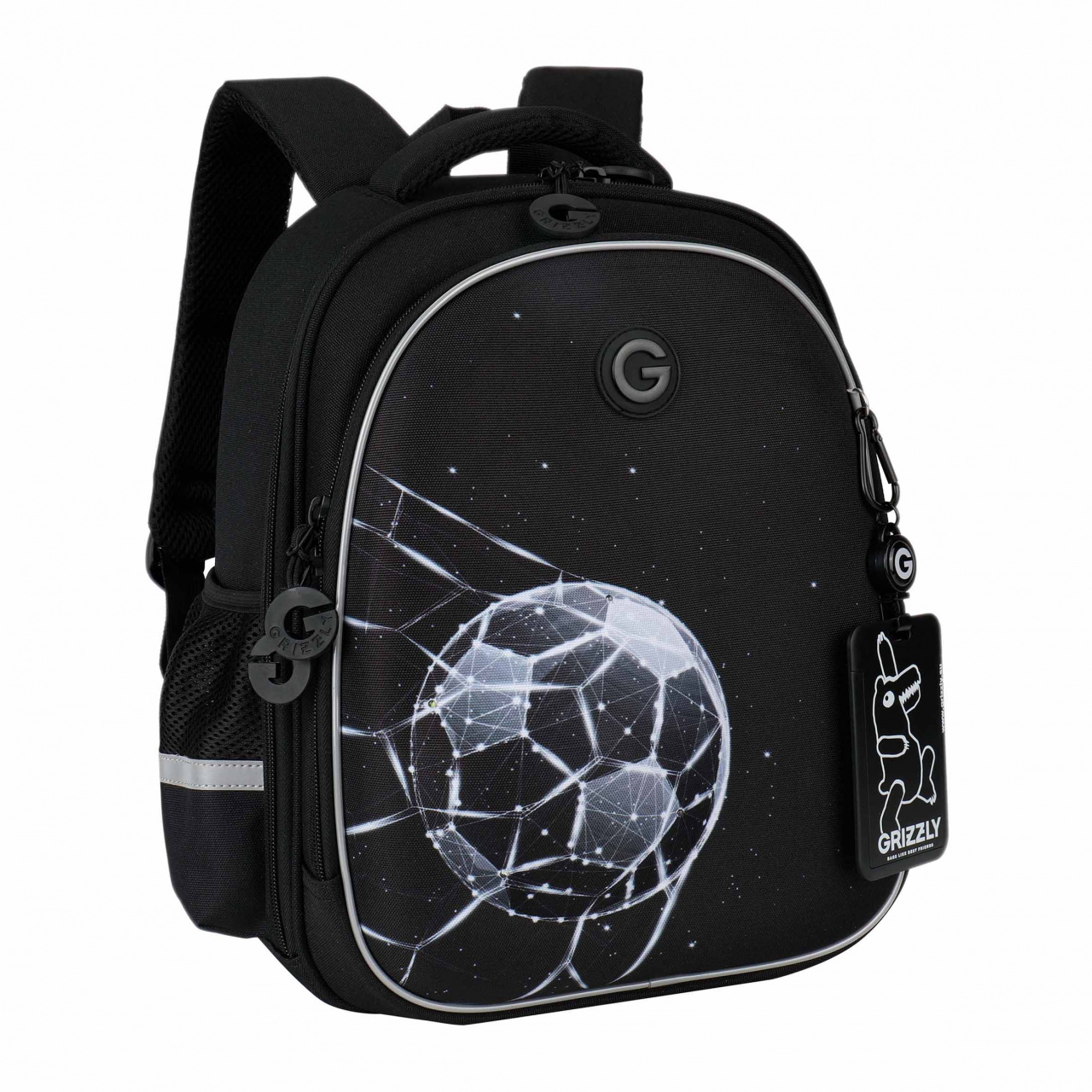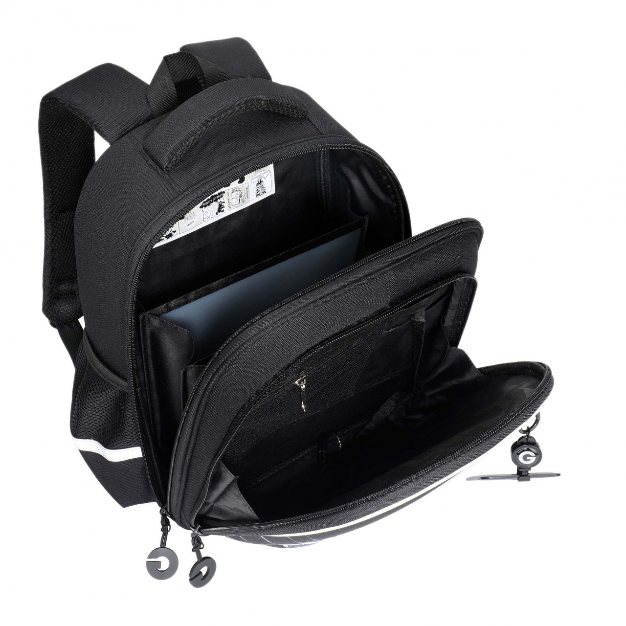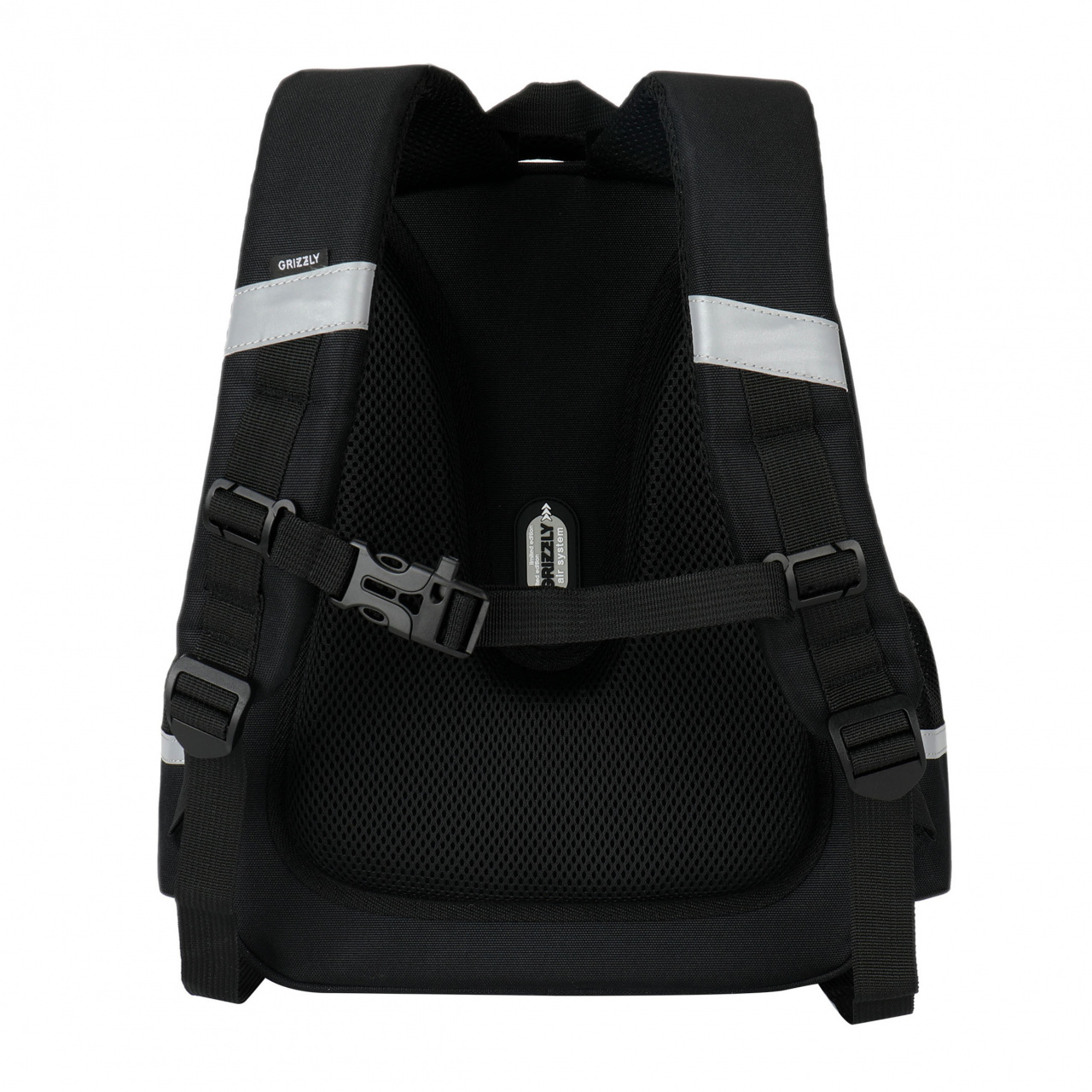 Рюкзак школьный Grizzly RAz-687-3 черный, 2отд, карманы, анат.спинка, картхолдер, свет.эле, 28х36х20
