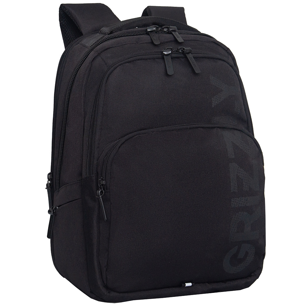 Рюкзак молодежный Grizzly RU-533-3 черный, 2 отд, карманы, анатом.спинка, свет.элемен, 32,5х43х20,5