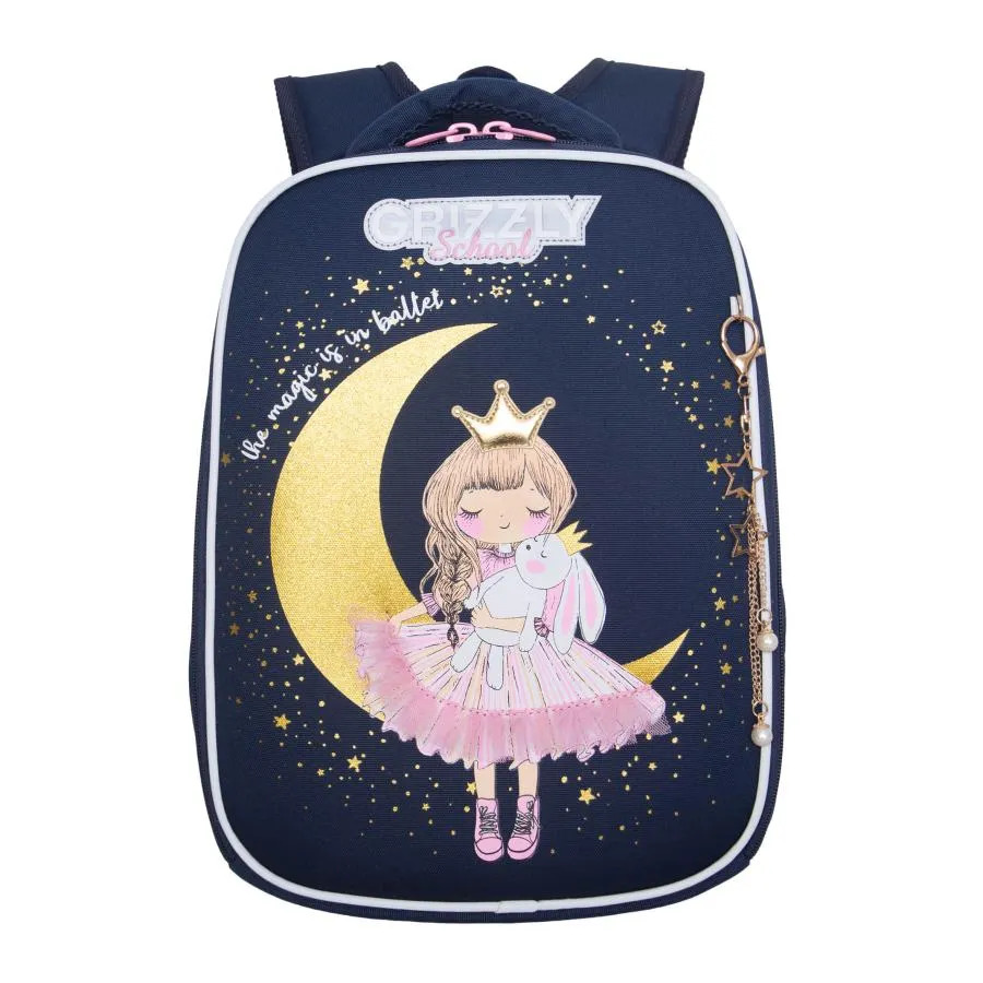 Рюкзак школьный Grizzly Raw-694-8 синий, 2отд., карманы, анат.спинка, свет.элем, 26х37х17