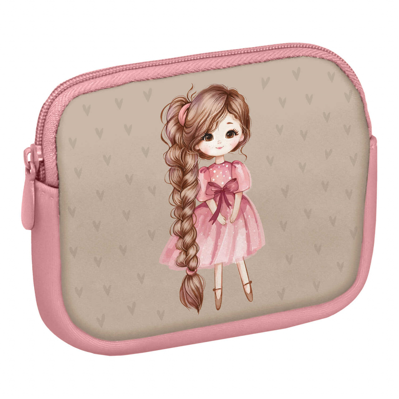 Кошелёк для банкнот и монет Феникс+, ДЕВОЧКА С КОСОЙ (12,5x9,5x1,8 см, неопрен, молния, сублимационная печать, ПЭТ-пакет)