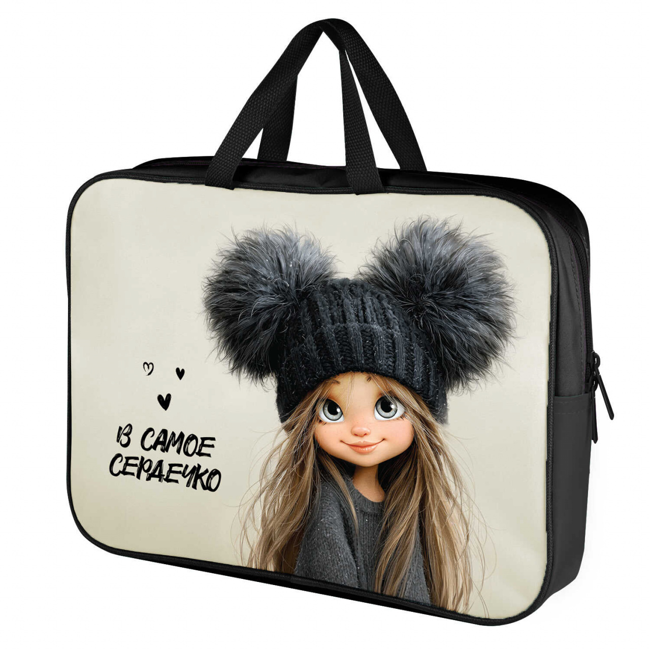 Папка А4 ФЕНИКС с ручками "Девчонка в шапке" для тетрадей, 1 отд., молния, 34,5х26х7 см.