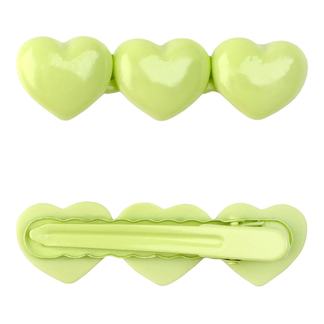 Заколка для волос «зажим», СЕРДЕЧКИ (в наборе: 1шт., 6,5 см, черный металл, полиэфирная смола, цвет: зелёный, подложка из мелованного картона + ПЭТ-пакет с европодвесом)