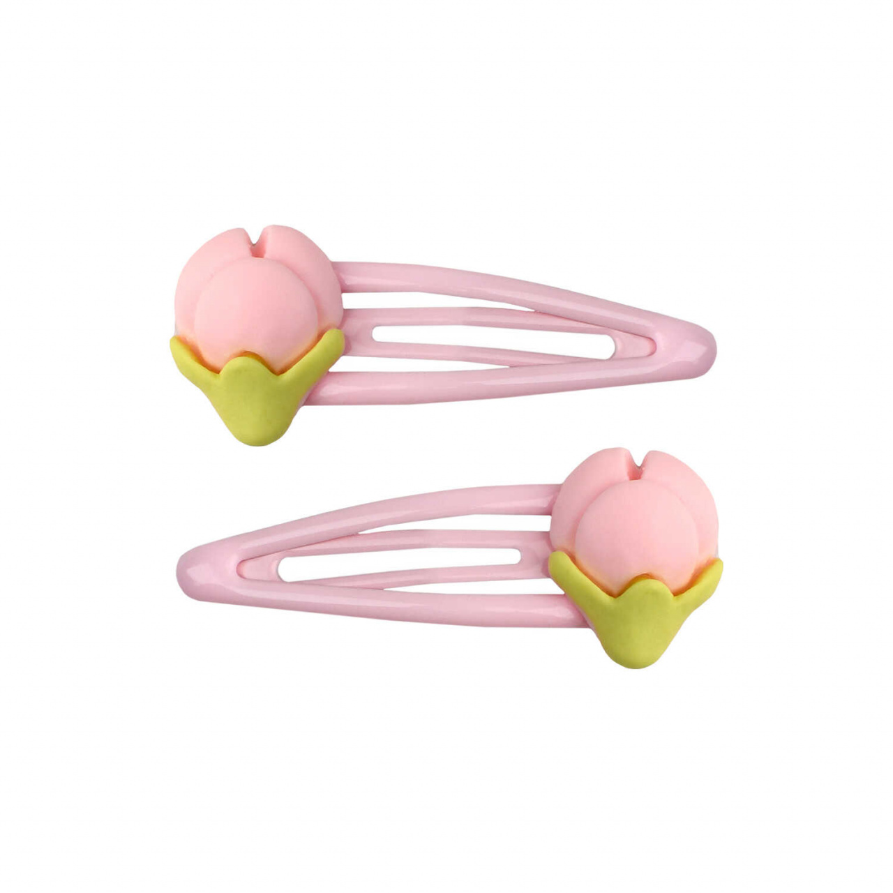 Набор заколок для волос «клик-клак», «зажим», глянцевые, ЦВЕТОЧКИ (в наборе: 5шт., 6,8 см, черный металл, полиэфирная смола, цвет: розовый, подложка из мелованного картона + ПЭТ-пакет с европодвесом)