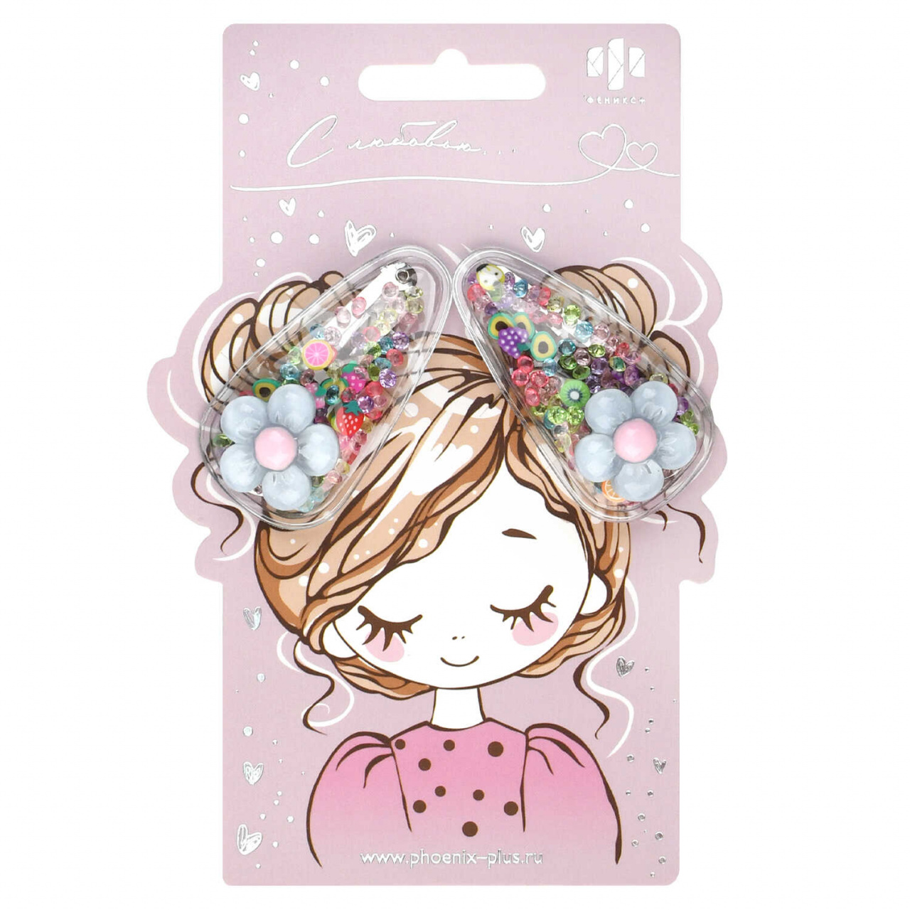 Набор заколок для волос ФЕНИКС "Цветочки" 2шт, 5,5см, металл, разноцветные, пакет, европодвес