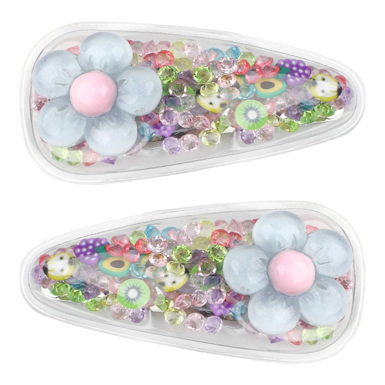 Набор заколок для волос «клик-клак», ЦВЕТОЧКИ (в наборе: 2шт., 5,5 см, черный металл, поливинилхлорид, полиуретановая смола, цвет: разноцветный, подложка из мелованного картона + ПЭТ-пакет с европодвесом)