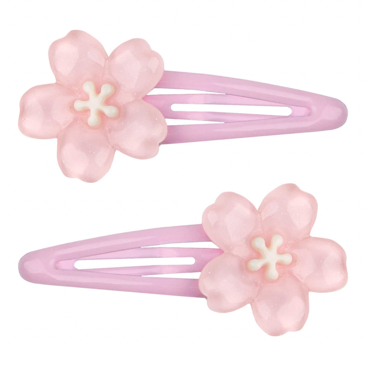 Набор заколок для волос «клик-клак», глянцевые, ЦВЕТОЧКИ (в наборе: 2шт., 5,8 см, черный металл, полиуретановая смола, цвет: розовый, подложка из мелованного картона + ПЭТ-пакет с европодвесом)