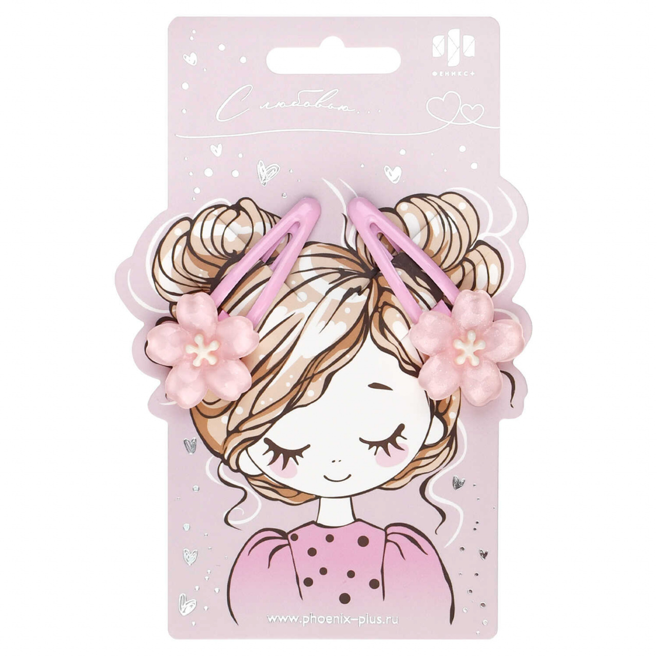 Набор заколок для волос ФЕНИКС "Цветочки" 2шт, 5,8см, металл, розовые, пакет, европодвес