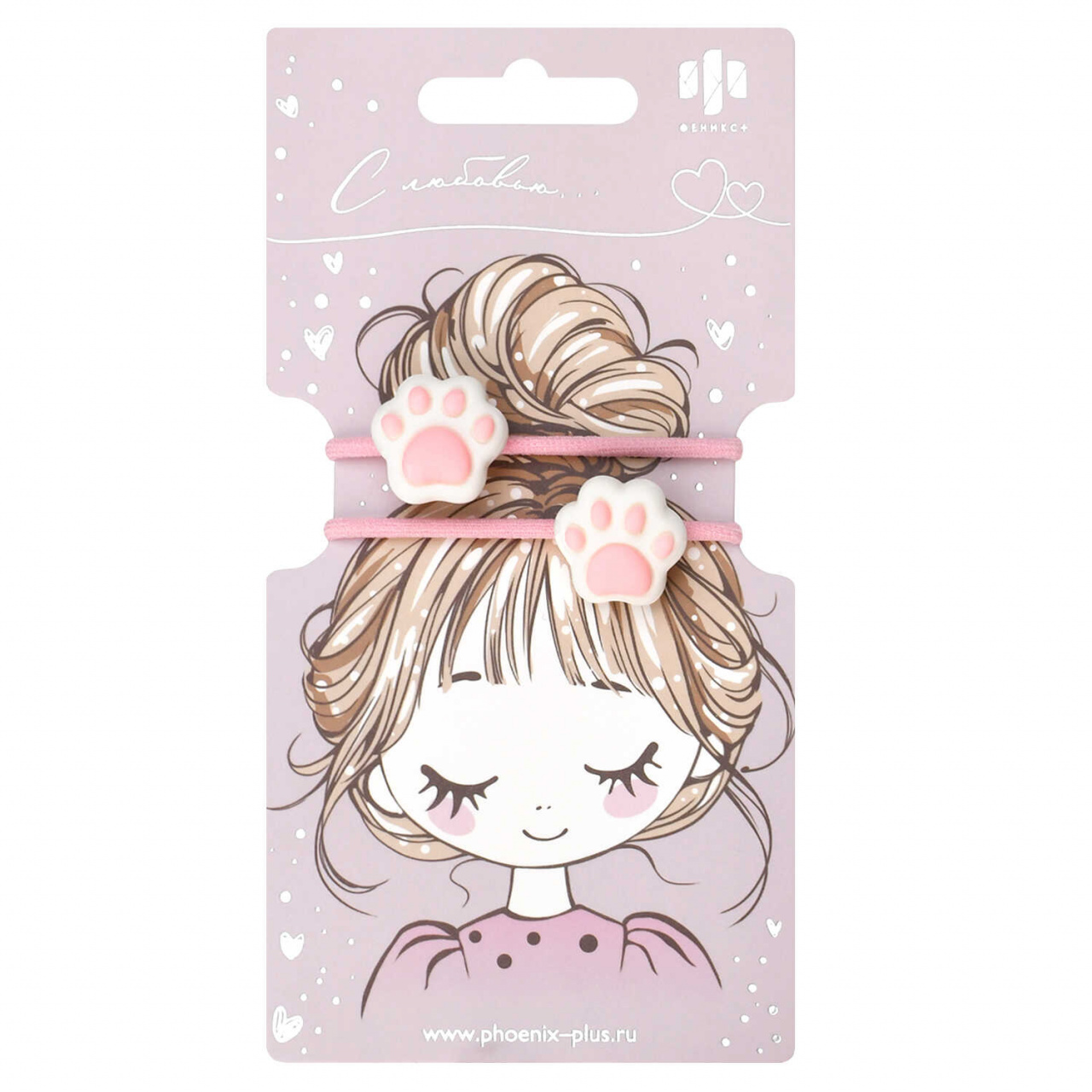 Набор резинок для волос ФЕНИКС "Лапки" 2шт, вулкан.резина, полиэстер, розовые, европодвес
